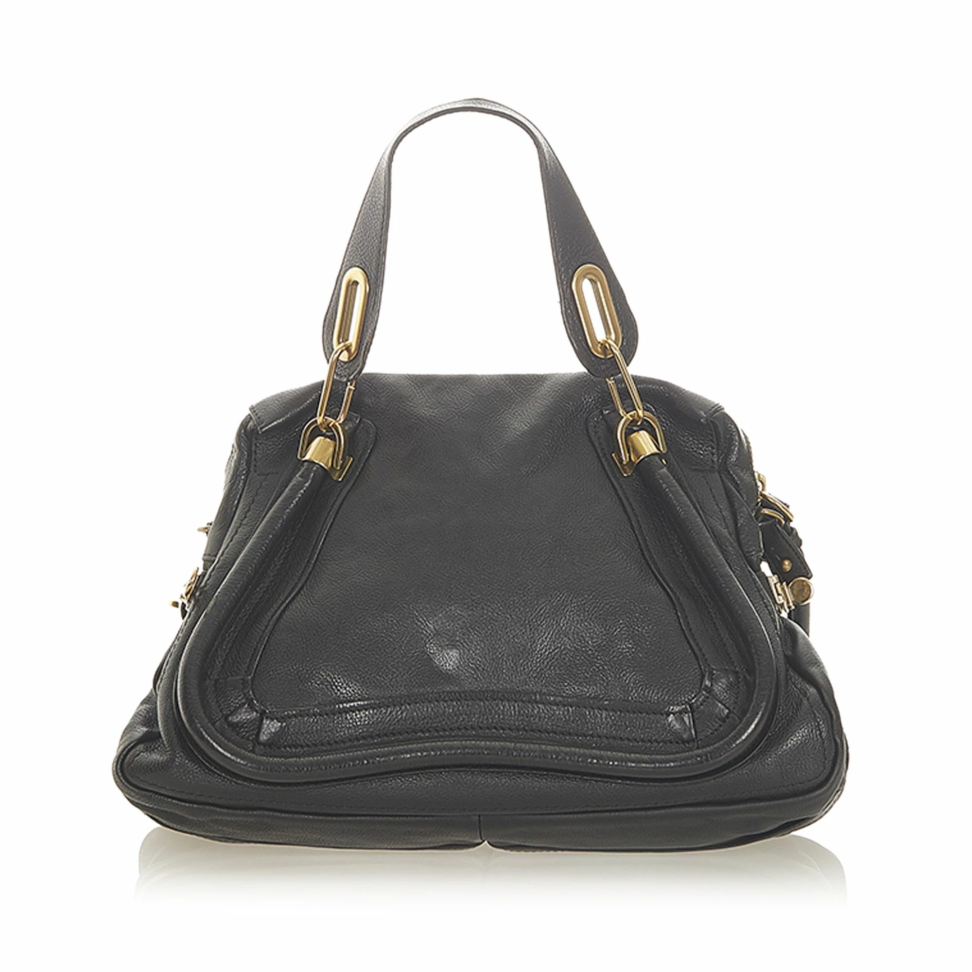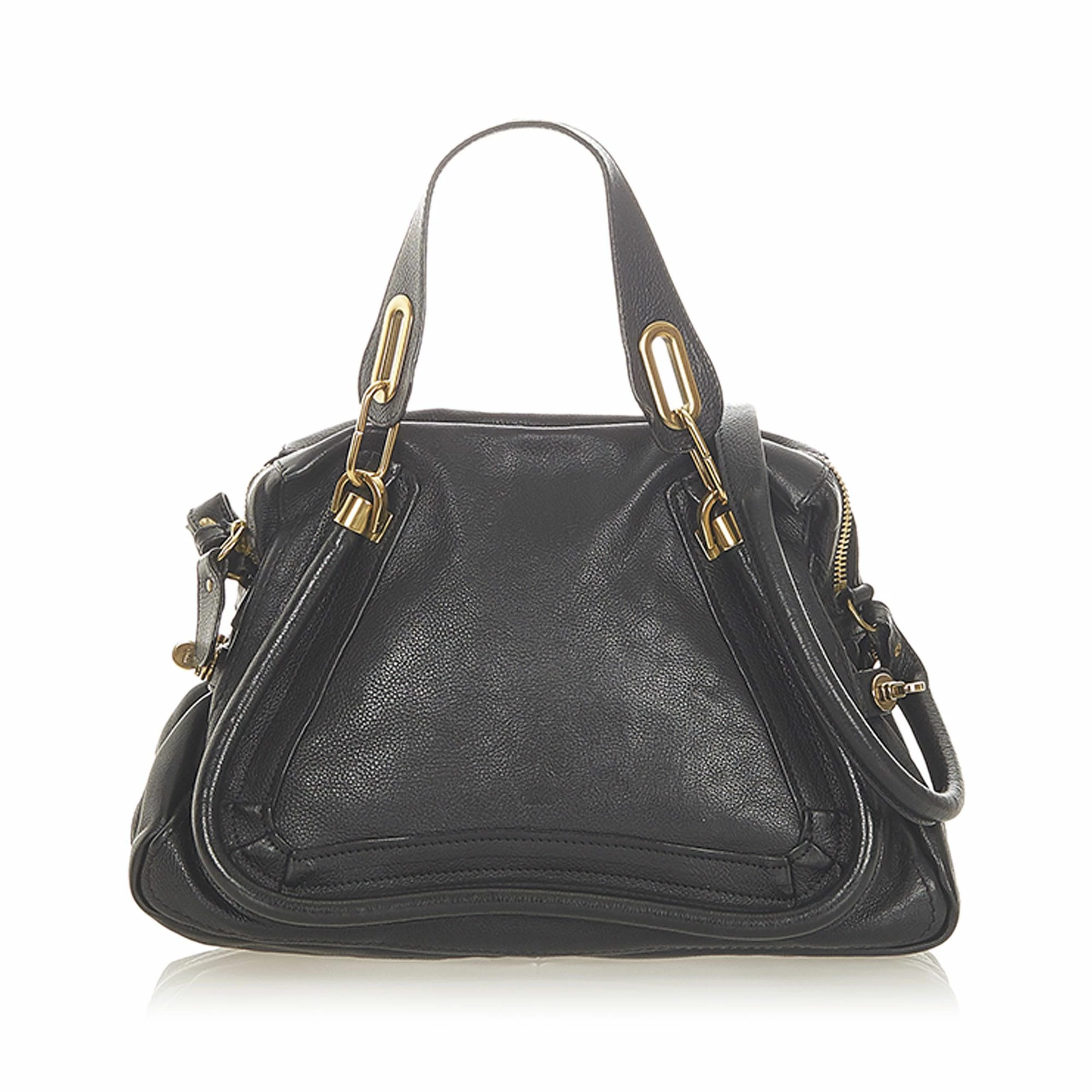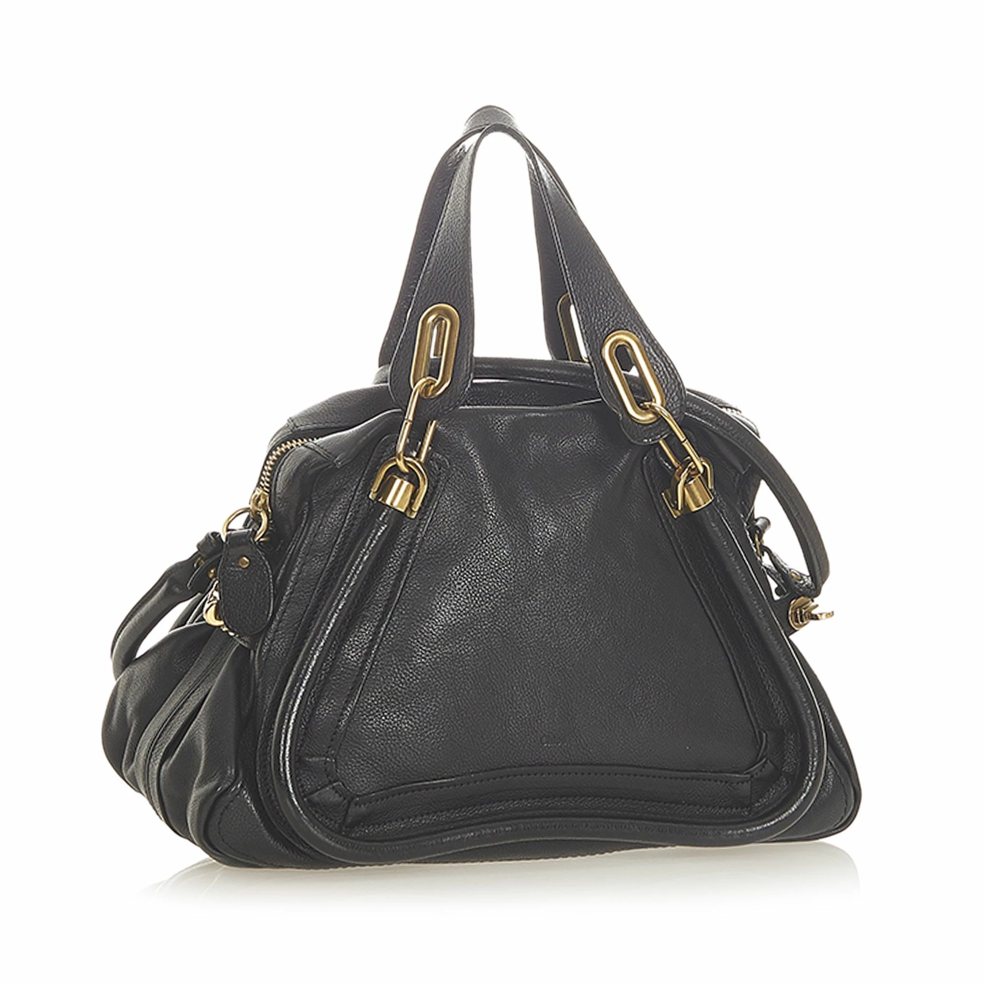 VINTAGE. RRP AS NEW. The Paraty satchel features a leather body, flat leather handles, a detachable rolled leather strap, a top zip closure, and interior zip and slip pockets.Exterior back is discolored. Exterior bottom is discolored. Exterior corners is discolored. Exterior front is discolored. Exterior handle is discolored. Exterior side is discolored. Zipper is scratched and tarnished. Interior lining is discolored and stained. Interior pocket is discolored and stained.