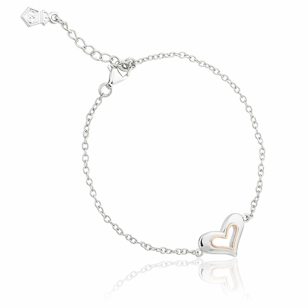 A classic heart bracelet with our modern design flourish, fall in love with this sterling silver bracelet with our rare 9ct Welsh gold at its heart. Stunning worn alone or as a stacking bracelet.