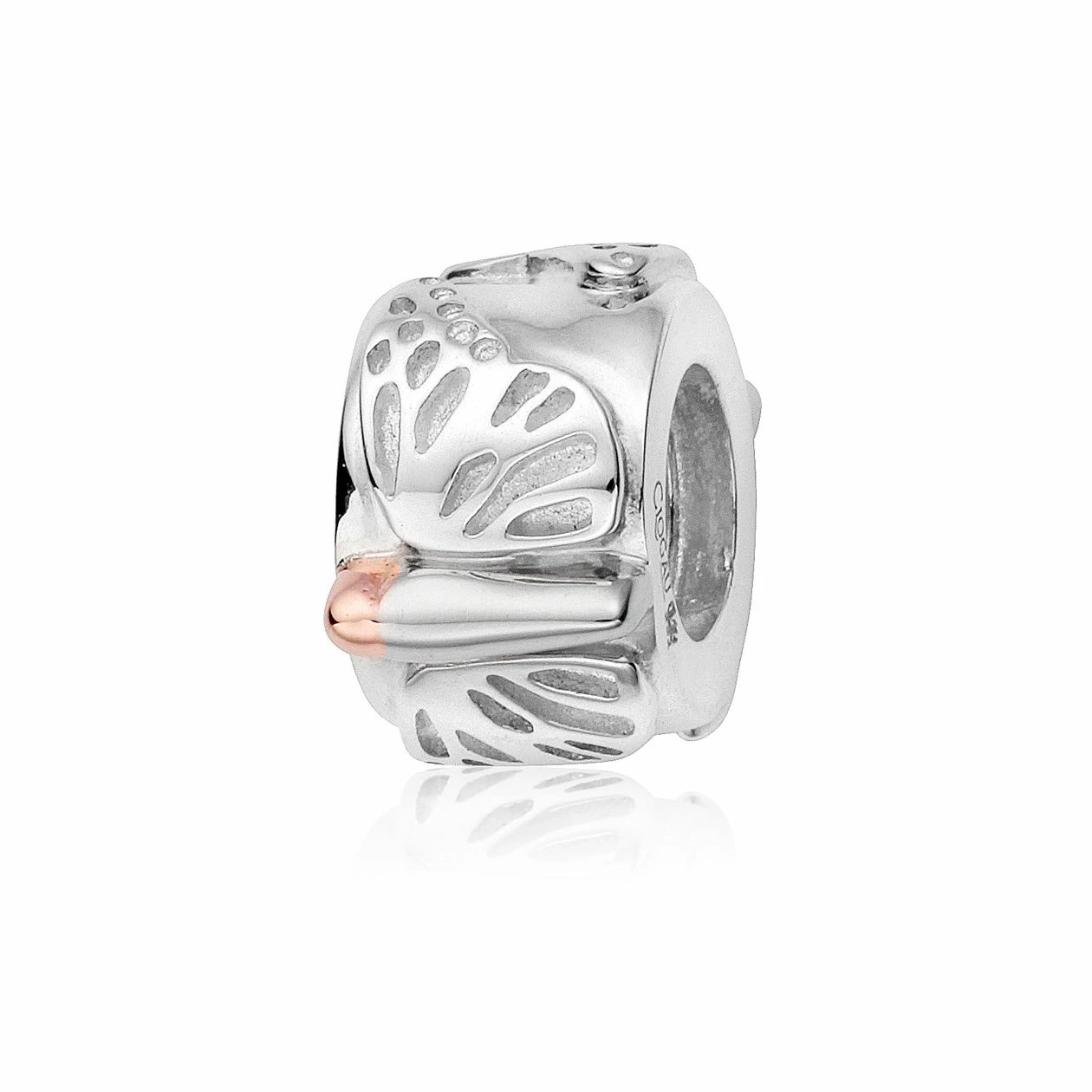 From cherished memories shared with friends and family to once-in-a-lifetime occasions, each charm on your bracelet tells the story of landmark events and personal occasions in a beautiful and unique way. This stunning Milestones butterfly charm is expertly crafted in sterling silver with a dash of 9ct rose gold at its heart. Inspired by one of the most beautiful creatures on Earth, the butterfly charm becomes a stylish and desirable addition to your bracelet. This bead charm fits most Pandora, Chamilia and Trollbead bead charm bracelets.