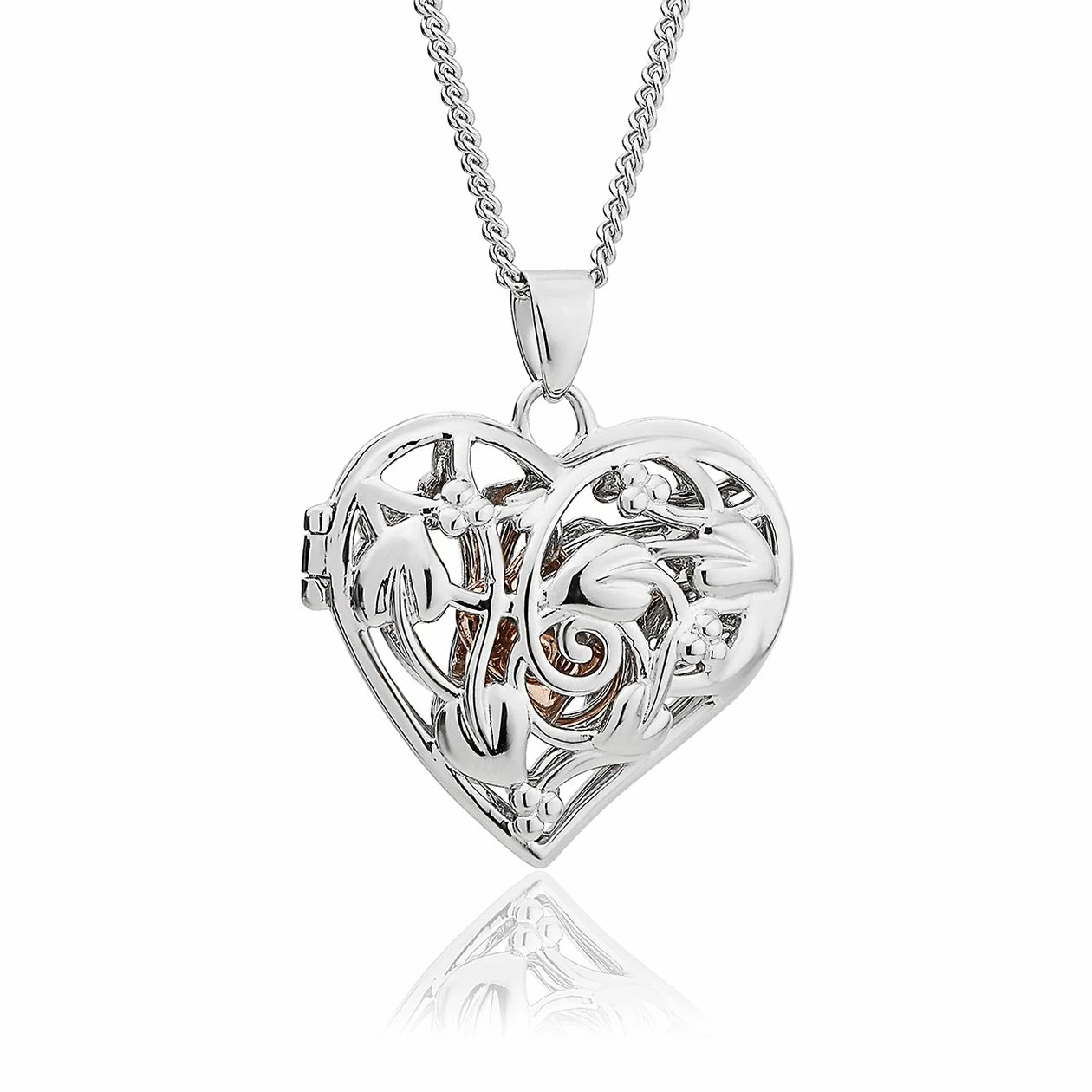 Inspired by the story of the great Tree of Life, the sterling silver and 9ct rose gold Tree of Life heart locket is one of the most intricate and beautiful pieces we we have ever created. Hanging freely, and enclosed within the Tree of Life filigree heart locket, is an intricate detailed heart charm. Contained within this breath-taking design is rare Welsh gold. The silver chain that accompanies this locket measures 22inch which can also be worn at 20inch and 18inch, and is secured by a bolt ring clasp. Available on a 22inch (55.8cm) chain that can also be worn at 20inch (50.8cm) and 18inch (46cm).