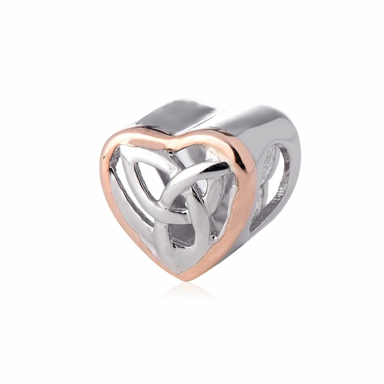 From cherished memories shared with friends and family to once-in-a-lifetime occasions, each charm on your bracelet tells the story of landmark events and personal occasions in a beautiful and unique way. The Milestones eternal love heart charm is expertly crafted in sterling silver with 9ct rose gold weaved through the Celtic knot shapes to make a stunning style statement as much as a memorable and thoughtful gift. This bead charm fits most Pandora, Chamilia and Trollbead bead charm bracelets.