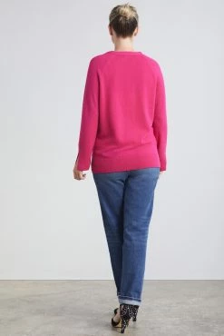 Loop Cashmere V Neck Cashmere Cardigan in Cherry – Pink