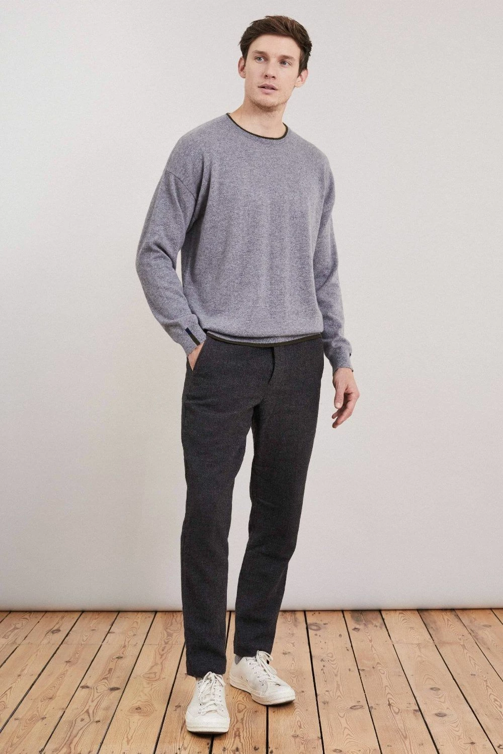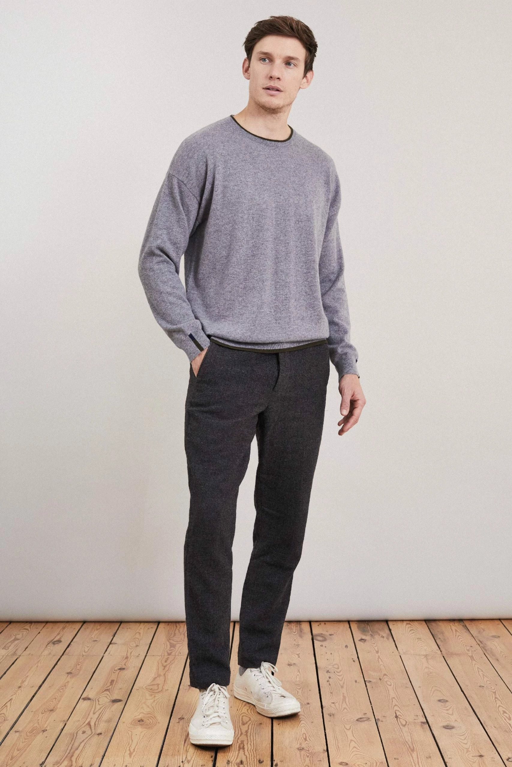 A timeless crew neck sweater with subtle contrast colour trims to the cuffs, neck and hem. Lightweight and insulating. Our crew neck sweater reinforces the idea that less is more. A refined addition to your cool-weather roster, it’s been expertly spun in Mongolia from sumptuous sustainable cashmere and will look equally at home with jeans and tailoring alike.