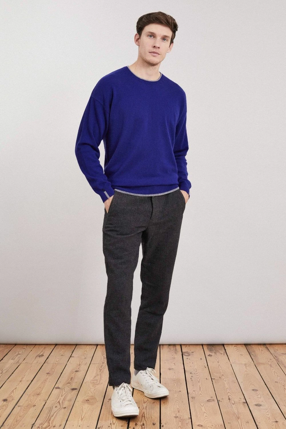 A timeless crew neck sweater with subtle contrast colour trims to the cuffs, neck and hem. Lightweight and insulating. Our crew neck sweater reinforces the idea that less is more. A refined addition to your cool-weather roster, it’s been expertly spun in Mongolia from sumptuous sustainable cashmere and will look equally at home with jeans and tailoring alike.