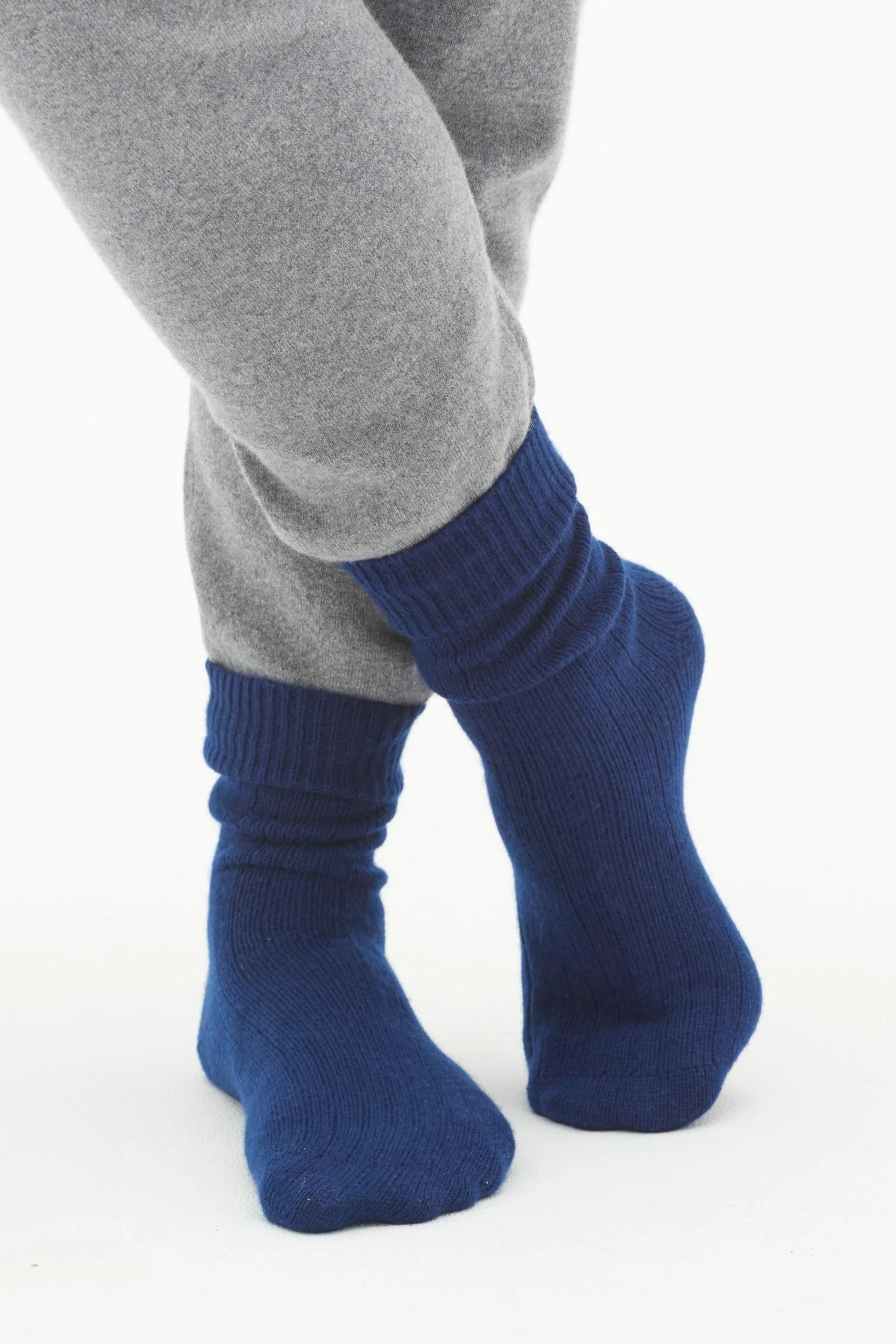 These socks are knitted in cashmere for a soft handle and finely ribbed at the cuffs to prevent them from slipping. A small amount of elastane ensures they wash and wear well.