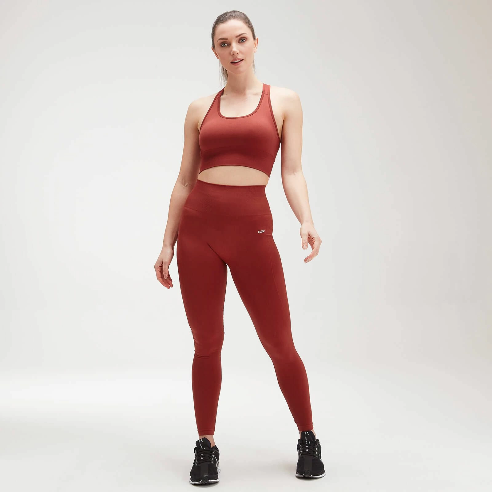 High-quality seamless design. Medium support, ideal for your training. Contoured to your curves. Seamless texture paneling. Removable cups for custom coverages. Wide racerback design. Supportive under bust band.